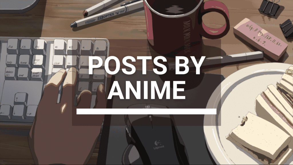 Anime-style illustration of hands typing on a laptop, with notebooks, a drink, and stationery scattered on a desk. Text overlay reads: “Post Series on the Blog.”